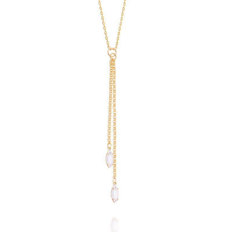 pingente formado por fio elo português, composto por 1 zircônia navete de 5 x10 mm em uma ponta e 1 zircônia navete de 4x8 mm na outra ponta.med 9,30cm x 0,50cm (joia lic. col. giovanna antonelli)